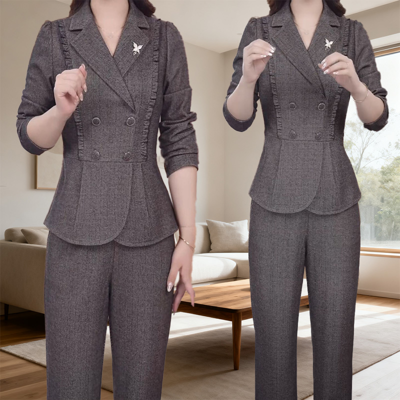 时尚职业套装女2025春秋新款木耳边显瘦西装领上衣长裤搭配一整套