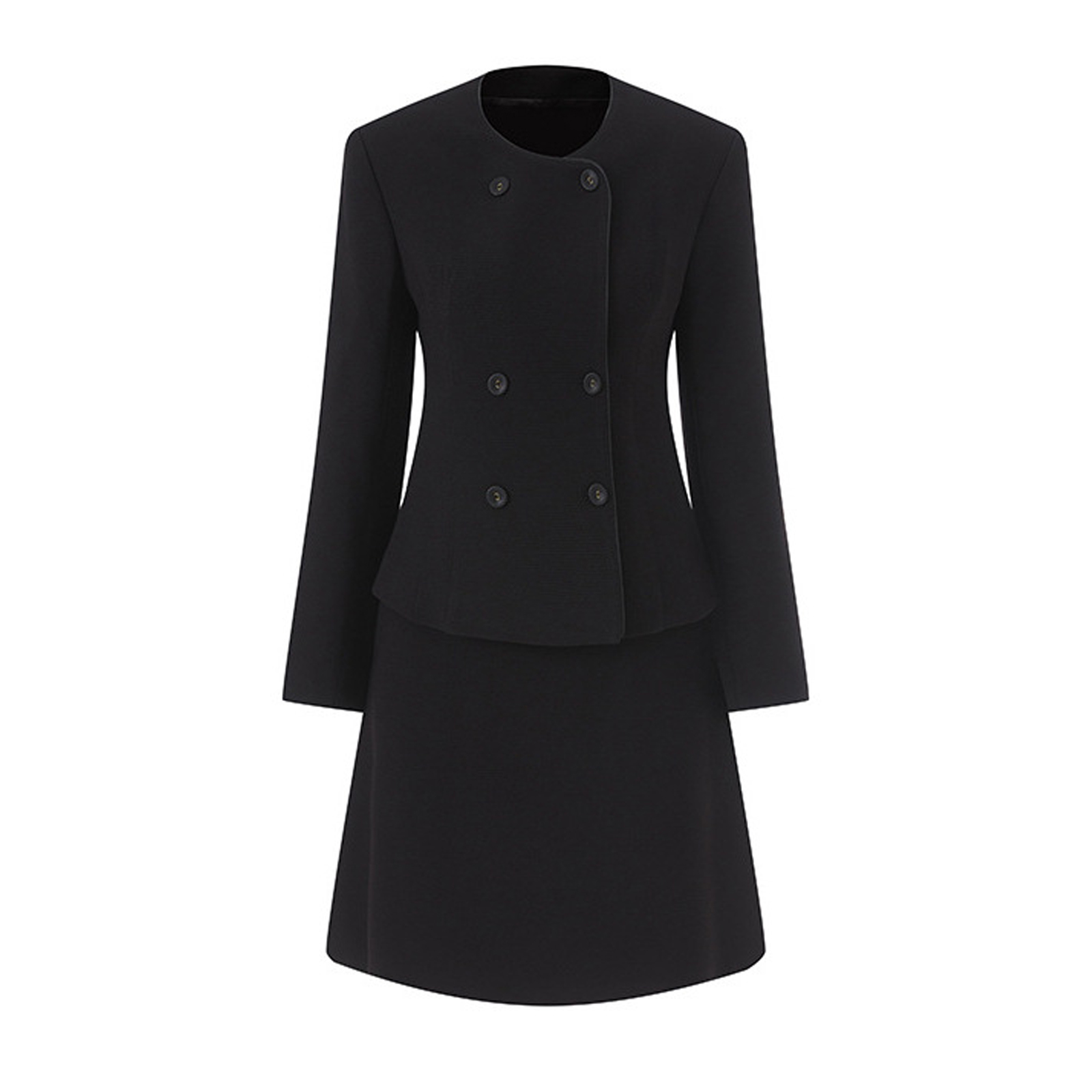 时尚职业套装女秋季新款双排扣无领收腰显瘦黑色气质西装半裙套装