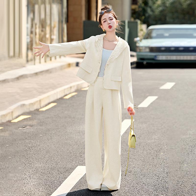 高级感时尚职业套装女春秋新款洋气减龄外套高腰阔腿裤显瘦三件套
