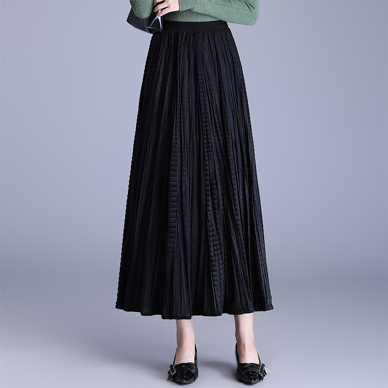 29827 加厚钻石金丝绒半身裙秋冬女中长款光泽感a字裙风琴百褶裙