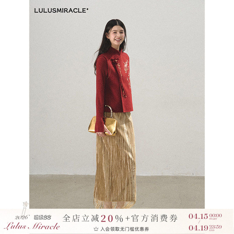 Lulusmiracle【波斯珐琅】流苏百褶金色丝绒冬季半身裙长裙遮胯