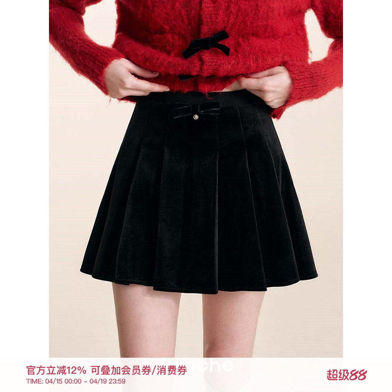 - 丝绒百褶裙