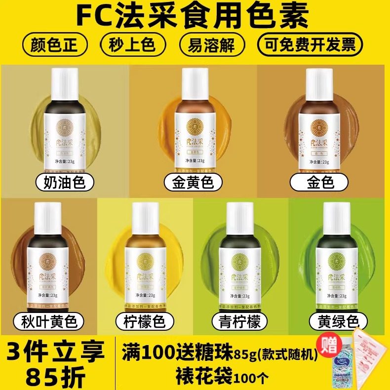 fc法采柠檬黄食用色素烘焙食品级蛋糕奶油裱花金黄色金色秋叶黄色