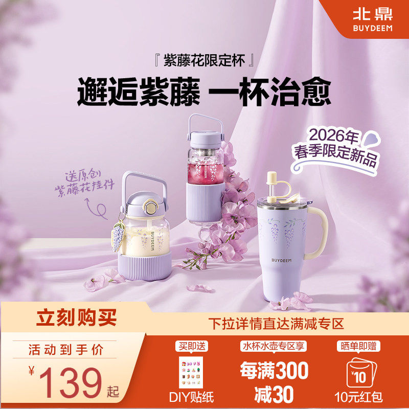 【新品上市】北鼎紫藤花系列泡茶杯子高颜值玻璃杯巨无霸保温水杯