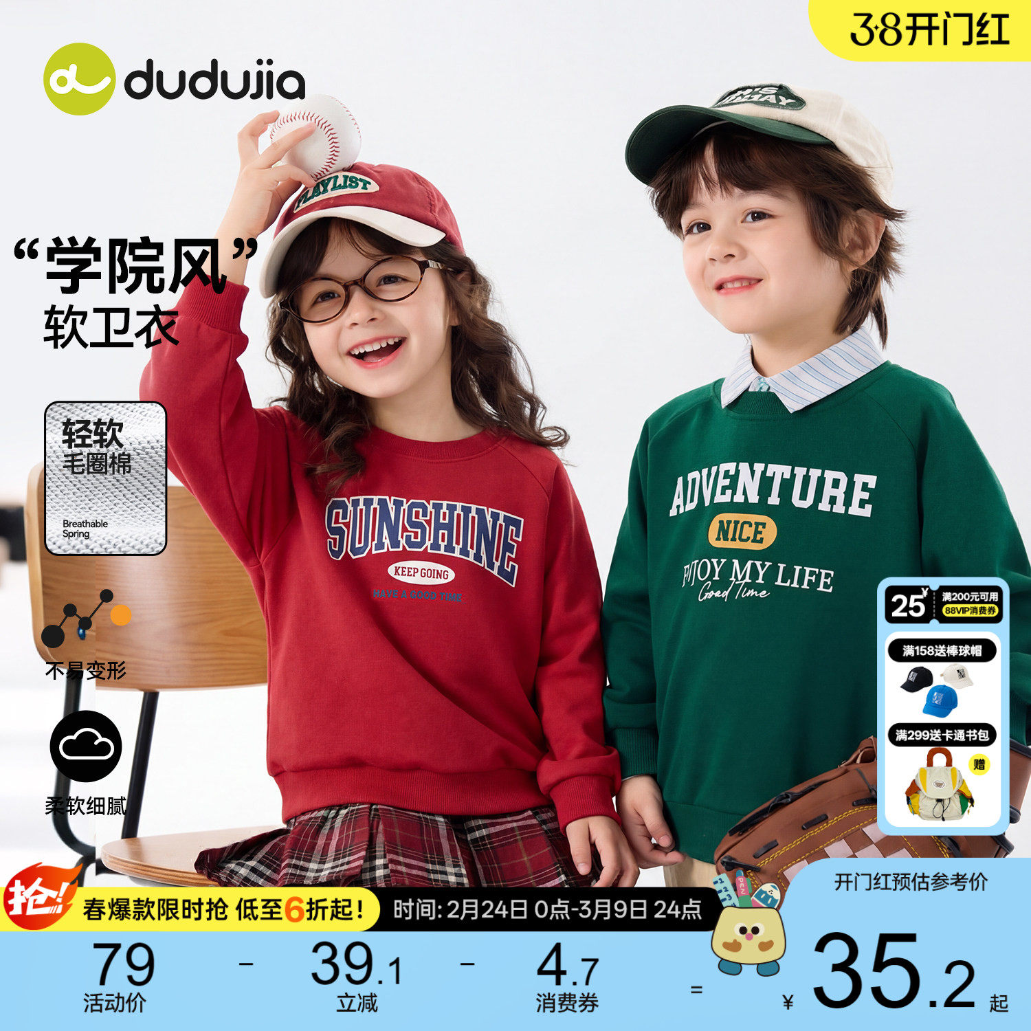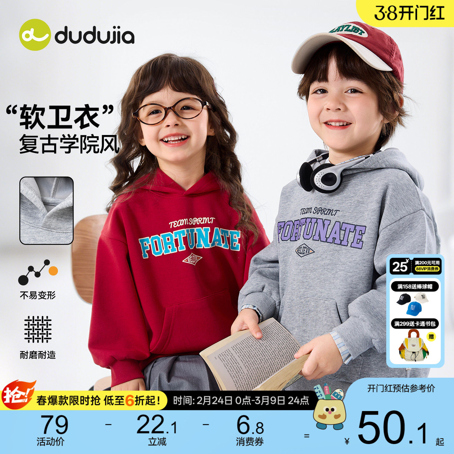 【学院风】嘟嘟家男童卫衣红色儿童连帽上衣衣服宝宝春装女童童装