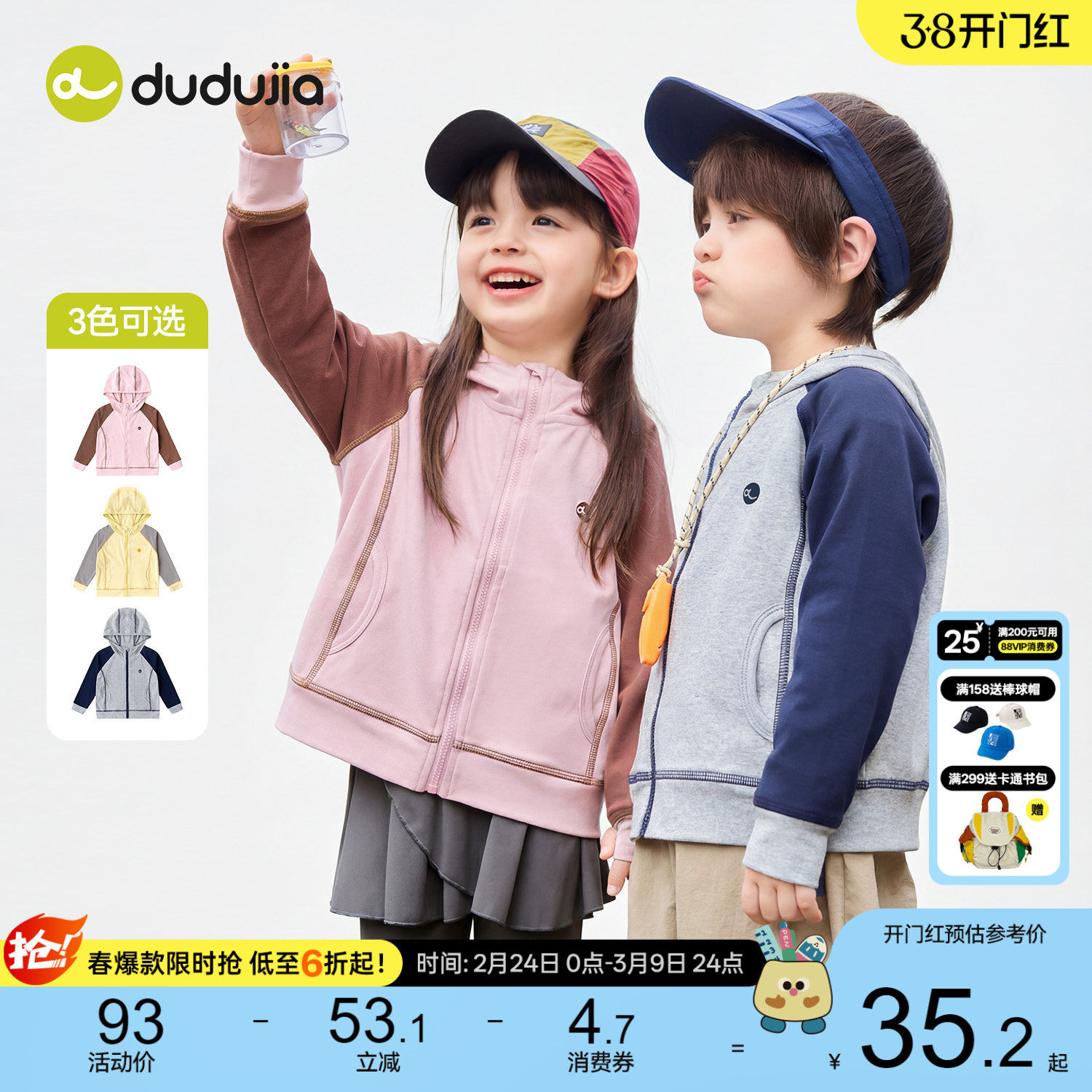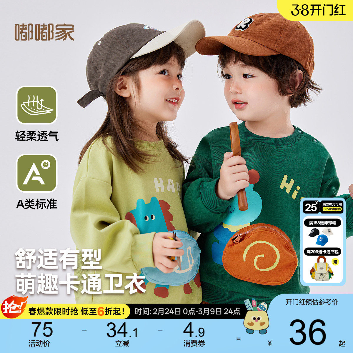 [贴身不磨]嘟嘟家儿童外套春季男童上衣女童卫衣开衫宝宝新款春装