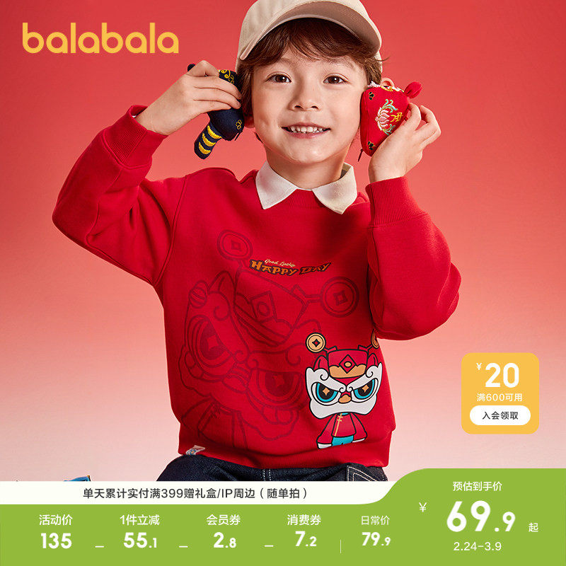 巴拉巴拉童装男童卫衣儿童2025年新款春装宝宝上衣小童红色拜年服