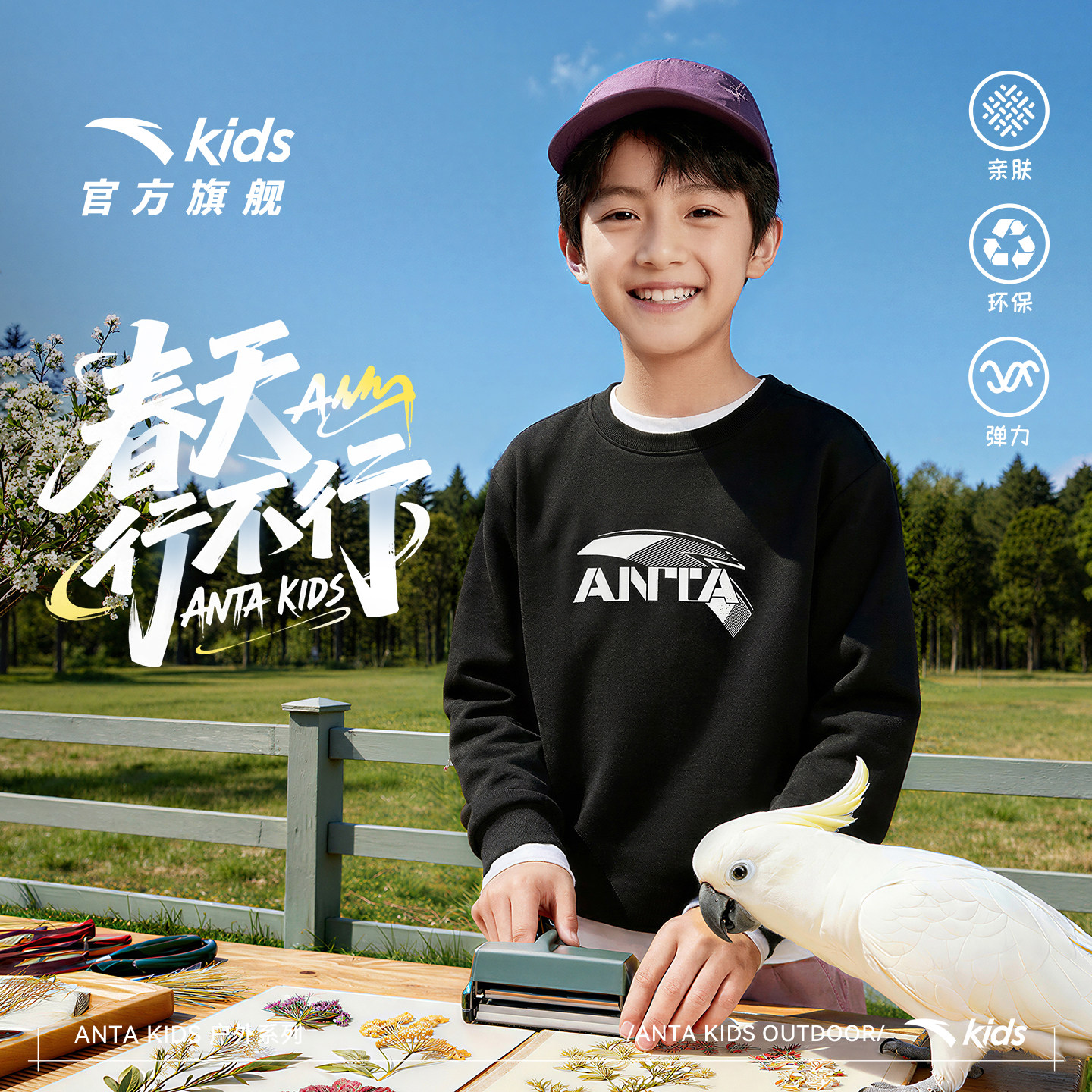 安踏儿童卫衣男童2026年新款春季女童春装宝宝卫衣加绒长袖上衣