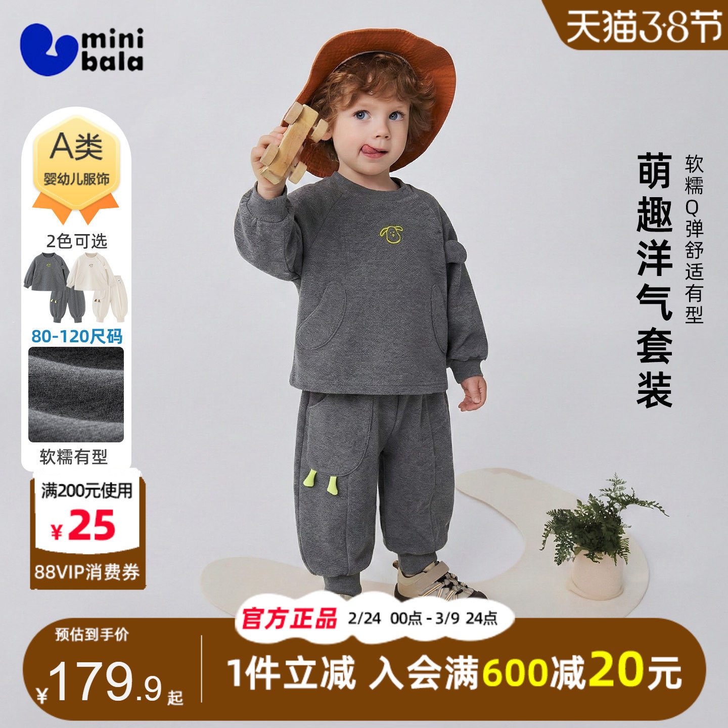 迷你巴拉巴拉男童宝宝卫衣套装2026春秋装新款儿童洋气宽松入园服