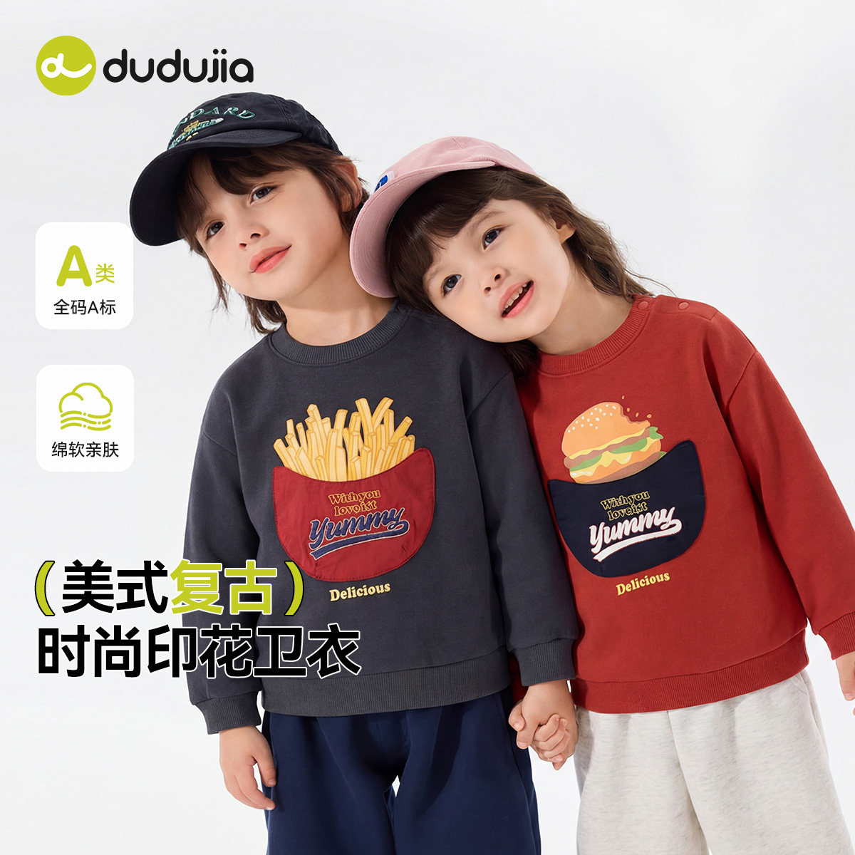 [汉堡薯条]嘟嘟家男童卫衣春季宝宝上衣美式儿童童装2026新款春装