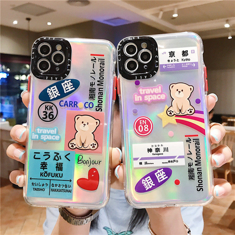 镭射可爱卡通彩虹小熊11Pro Max苹果X/XS/XR手机壳iPhone7p女8plus硅胶ins日韩国个性创意全包边防摔se保护套