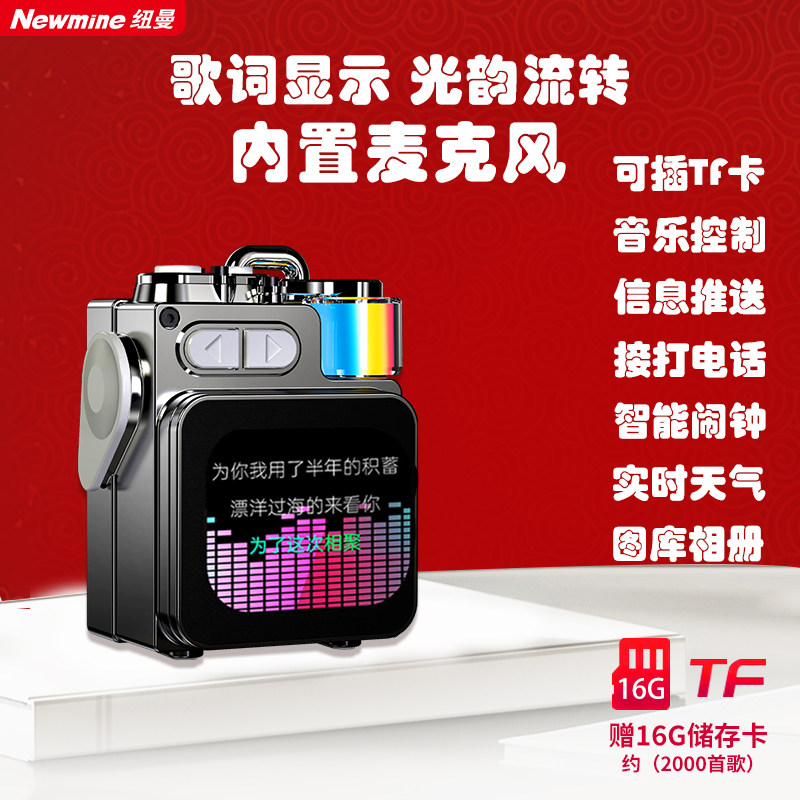 纽曼K15蓝牙音响歌词显示低音炮 小巧户外触屏手机音箱麦克风通话