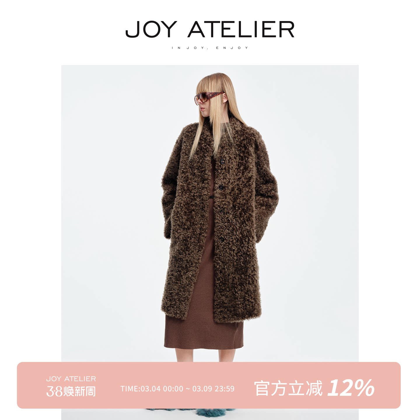 JAMUUS慵懒风仿羊羔毛牛角扣皮毛一体皮草外套女中长款保暖上衣