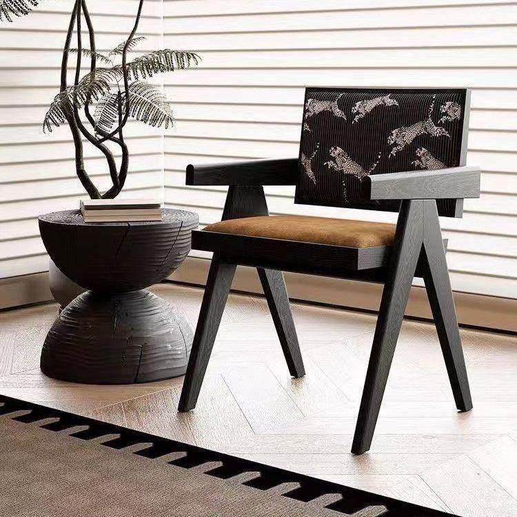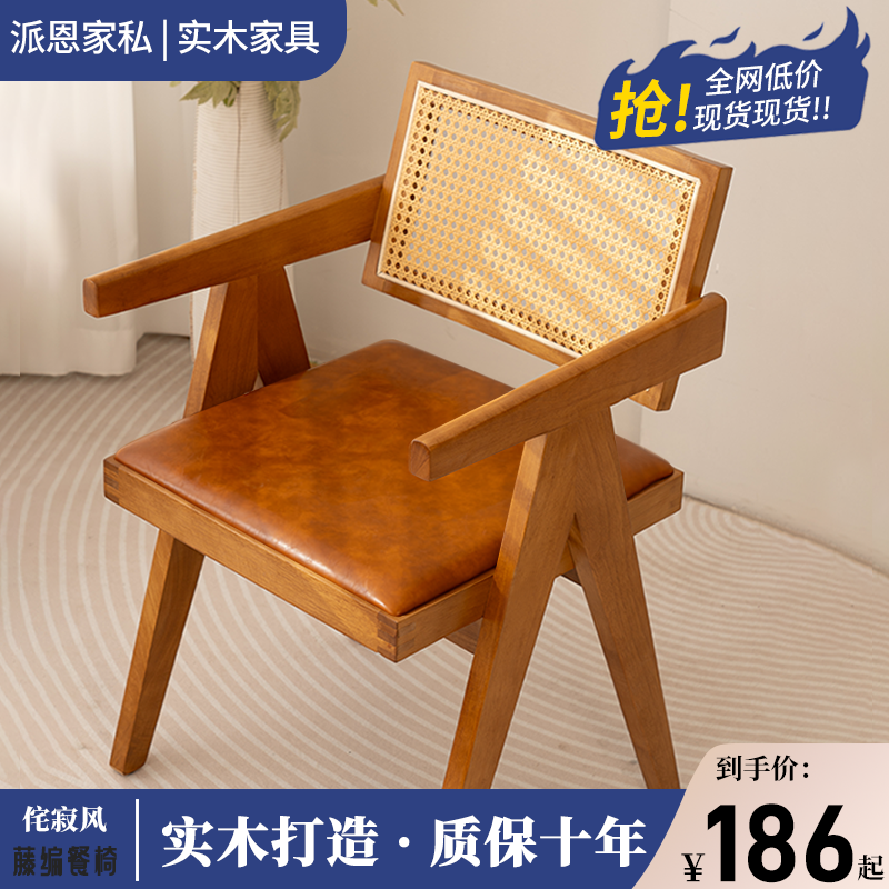 法式复古风实木餐椅家用餐厅现代简约椅子网红设计师中古昌迪加尔