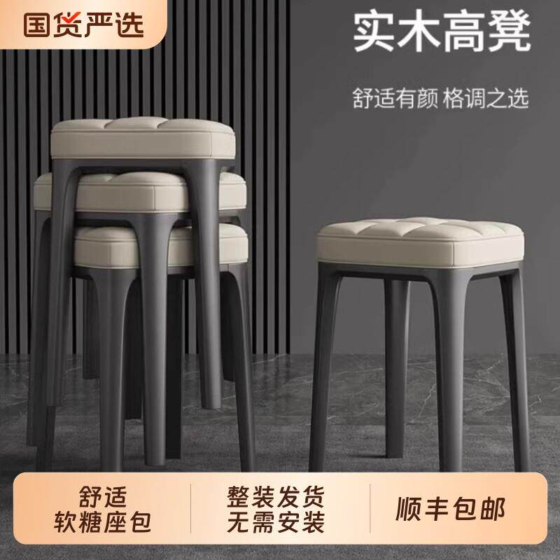实木餐椅家用软包凳子现代简约椅子客厅化妆台板凳可叠放餐桌凳子