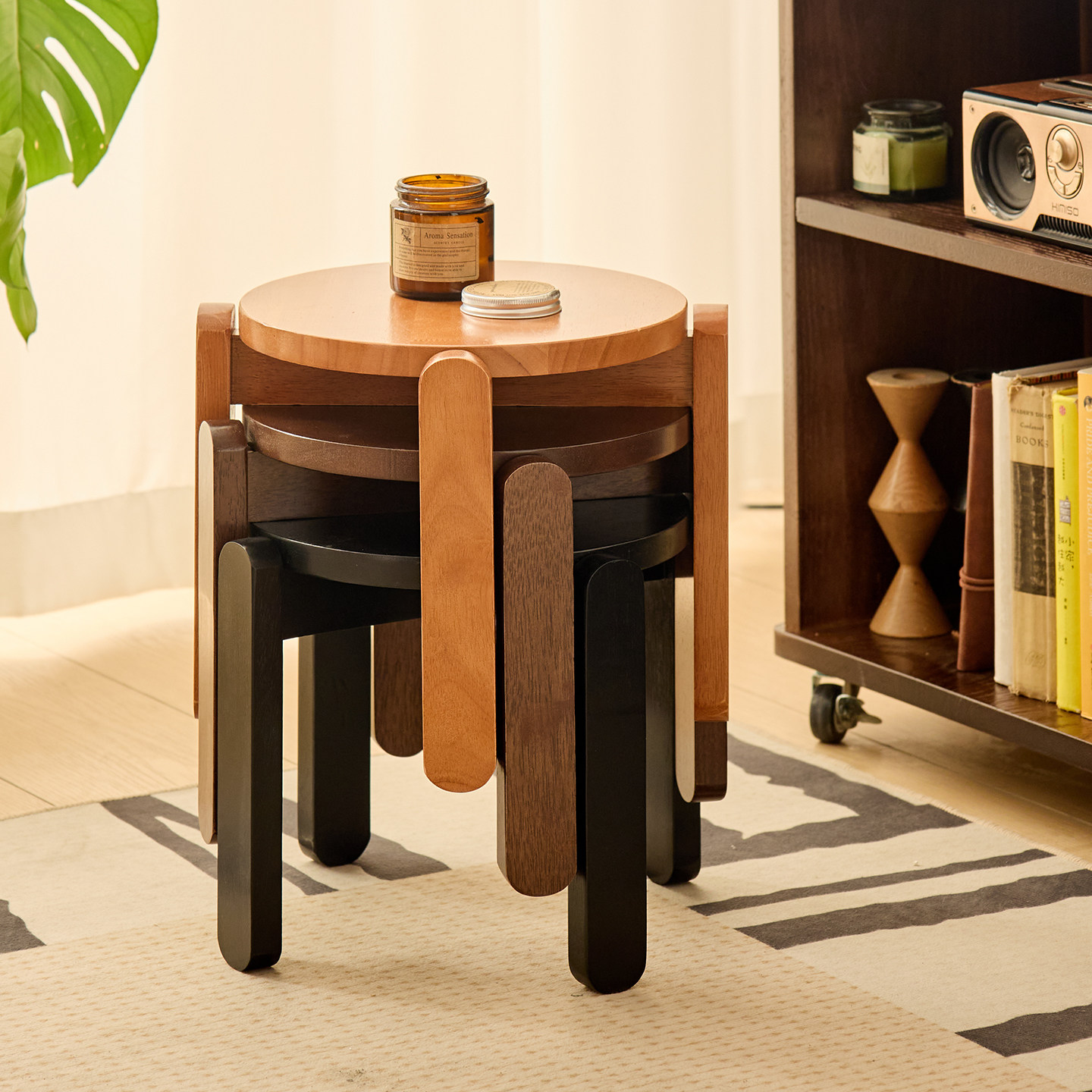 轻奢风实木堆叠小板凳矮凳家用客厅茶几凳子宝宝游戏凳现代简约椅