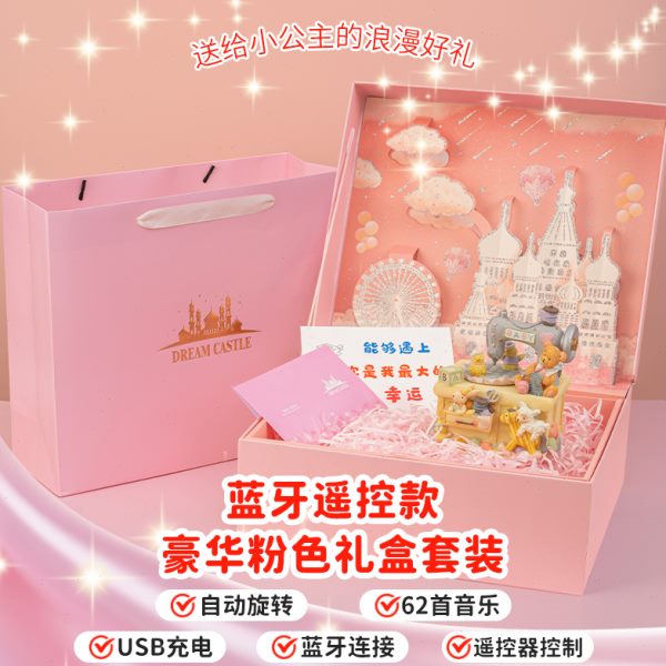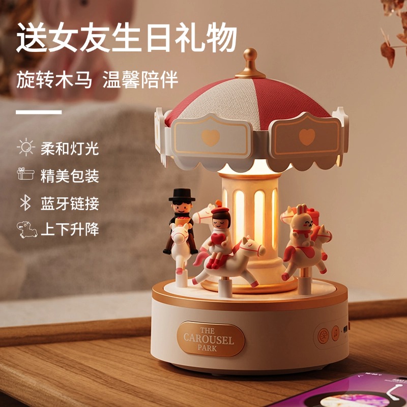 发光升降旋转木马音乐盒蓝牙八音盒送女朋友情侣女生儿童生日礼物