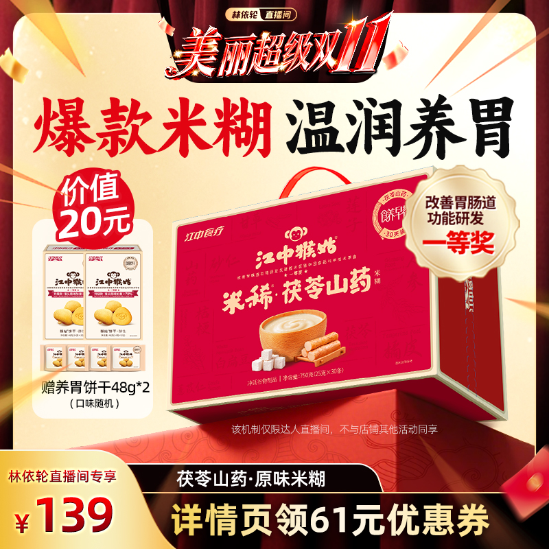【林依轮直播间】江中猴姑米稀原味米糊30天养胃食品猴头菇早餐