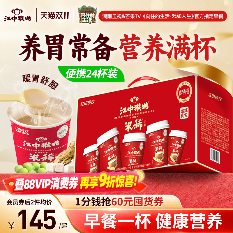 江中猴姑米稀原味米糊24杯装囤货礼盒装猴头菇养胃营养早餐0蔗糖
