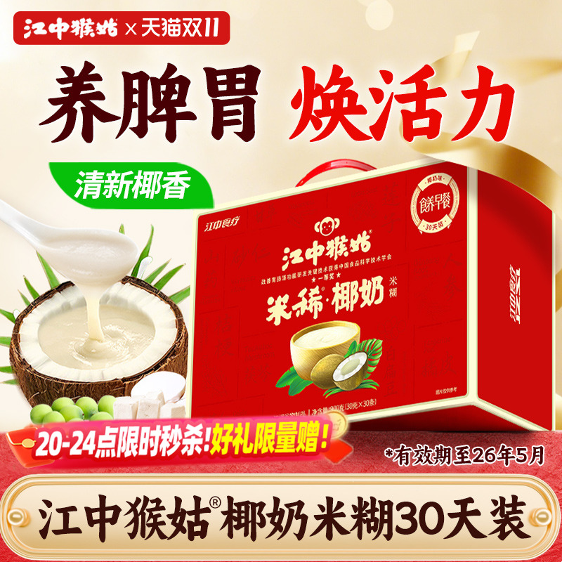 江中猴姑米稀椰奶米糊30天装养胃早餐代餐营养膳食纤维益生元冲饮