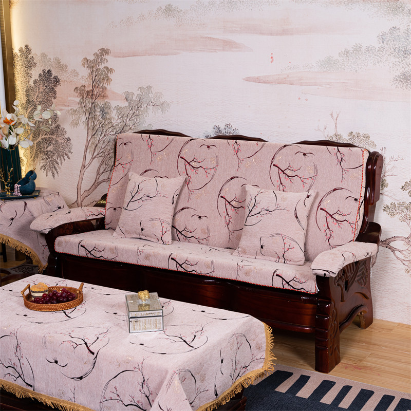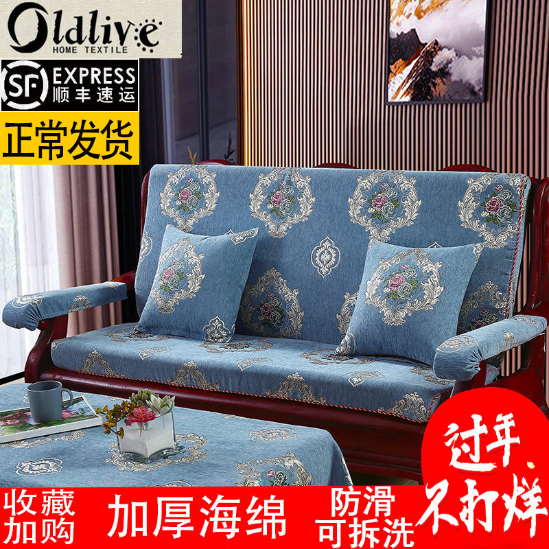 老式红实木沙发垫带靠背雪尼尔防滑可拆洗高密度加厚海绵垫子连体