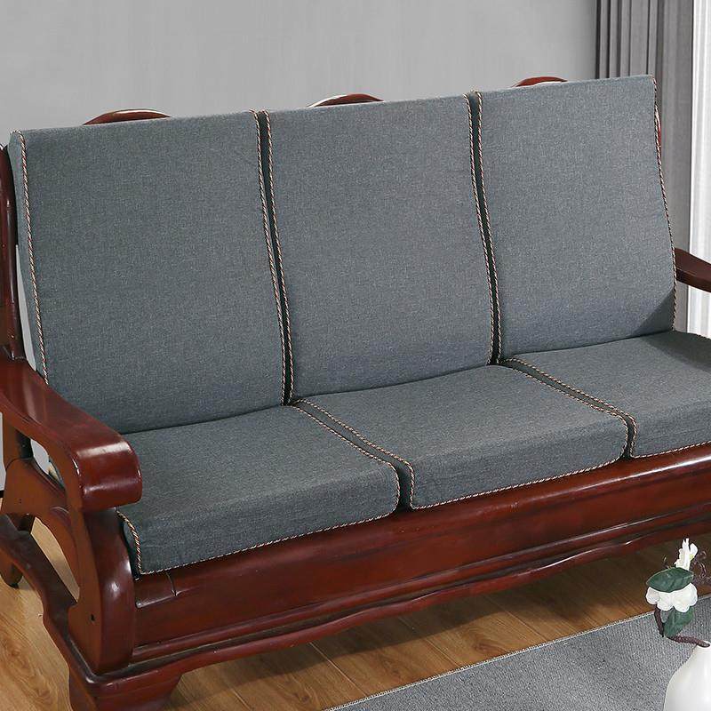 老式三人实木沙发海绵坐垫带靠背加厚防滑中式红木四季通用可拆洗