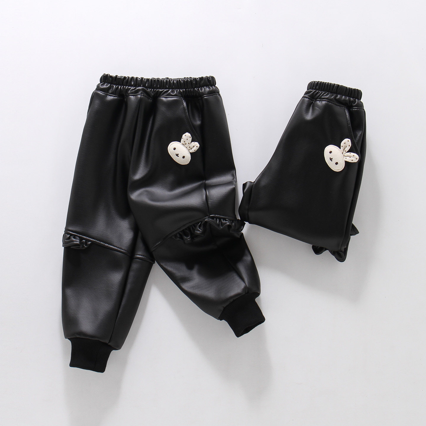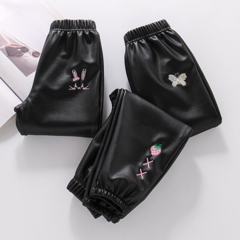 女童加绒皮裤秋冬新款宝宝一体绒保暖裤儿童冬季外穿防水薄绒裤子