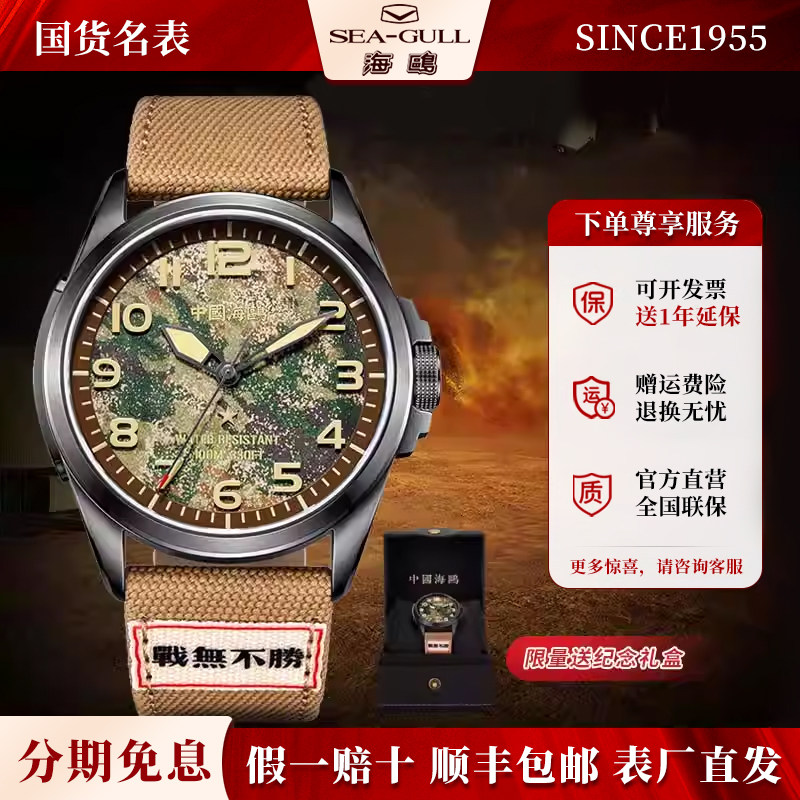 正品海鸥表男士手表夜光防水军旅风男款兵哥全自动机械表男表1072