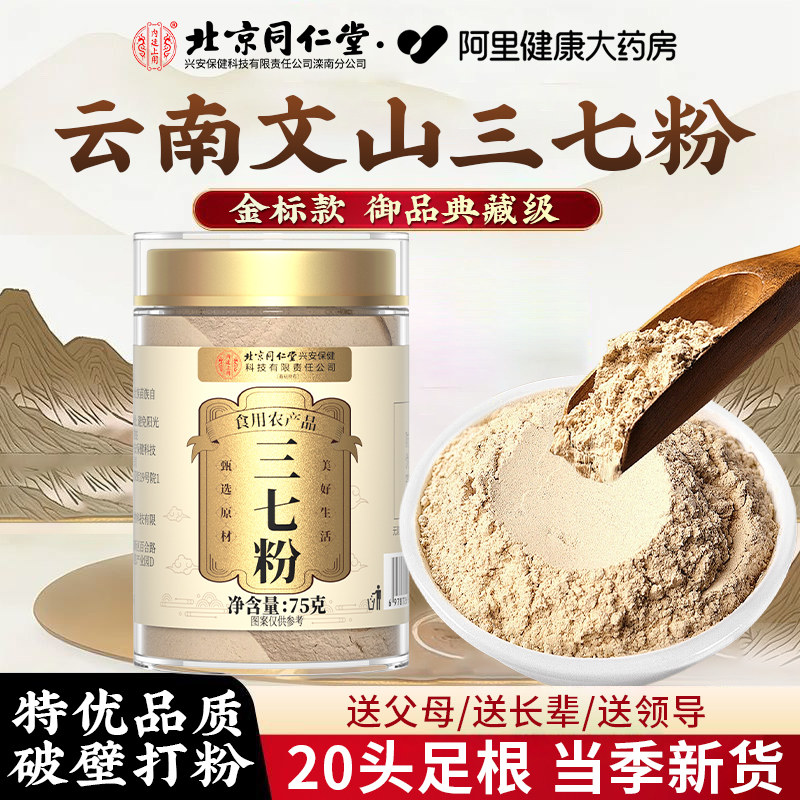 北京同仁堂云南文山三七粉正品官方旗舰店正宗特级纯田七超细打粉