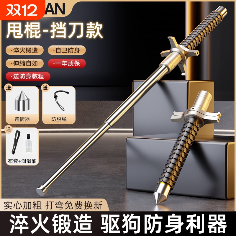甩棍神器合法车载防身武器甩棒实心三节伸缩棍自卫用品防狼狗打棒
