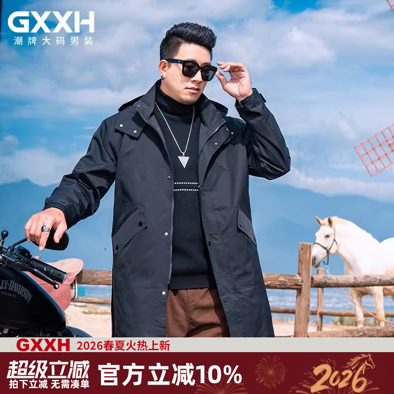 GxxH大码男装美式连帽风衣夹克男秋冬季潮流宽松百搭休闲防风上衣