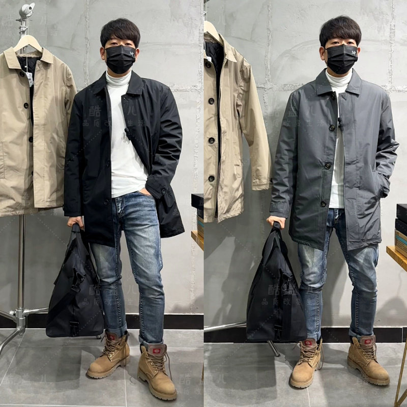 欧线轻奢高级秋冬男士时尚休闲商务通勤大码中长款夹棉风衣外套潮