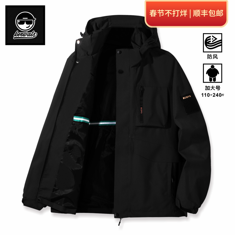 啄木鸟夹克男士秋冬季冲锋衣加绒工装户外休闲防风衣大码宽松外套