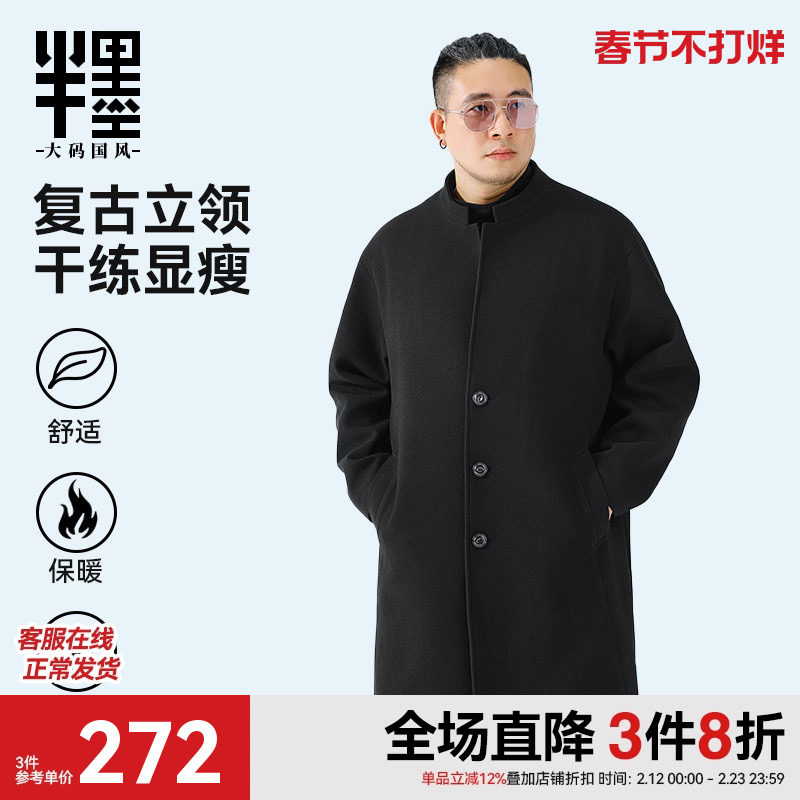 半墨大码男装新中式毛呢大衣男士商务行政立领风衣宽松中长款大衣