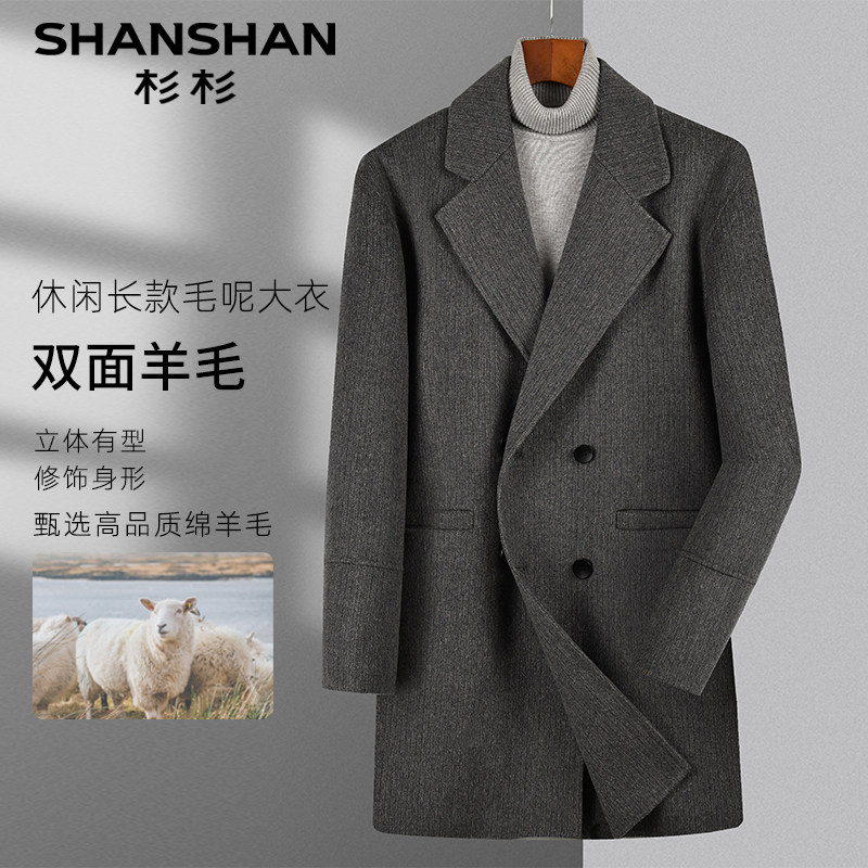 杉杉男士商务绵羊毛大衣2025秋冬新款保暖锁温大码风衣长款外套