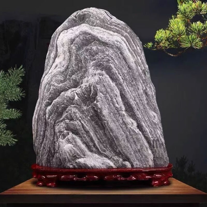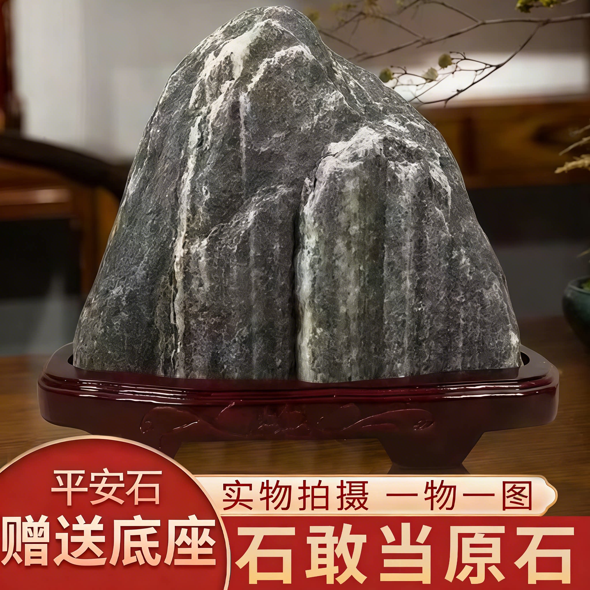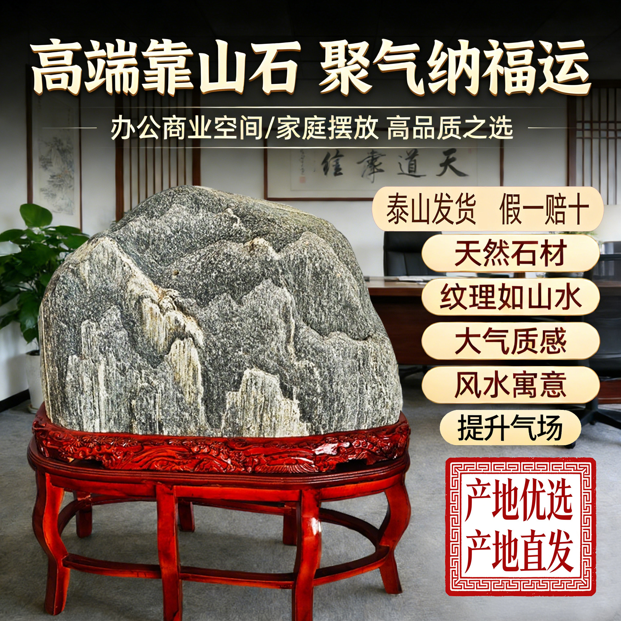 正宗泰山石原石中式天然办公室宅镇落地家用客厅招财摆件实木底座