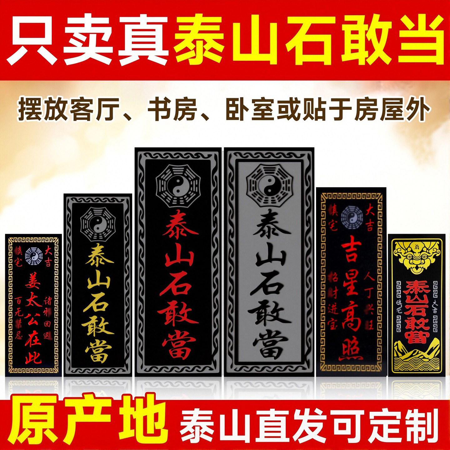 • 泰山石敢当镇宅化路冲室外大门口补角铜牌挂件山海镇天官赐福门贴