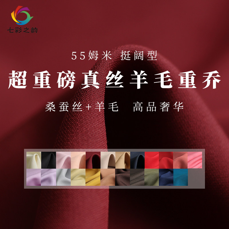 高级丝毛重乔真丝布料55姆米重磅真丝羊毛骨感外套西服连衣裙面料