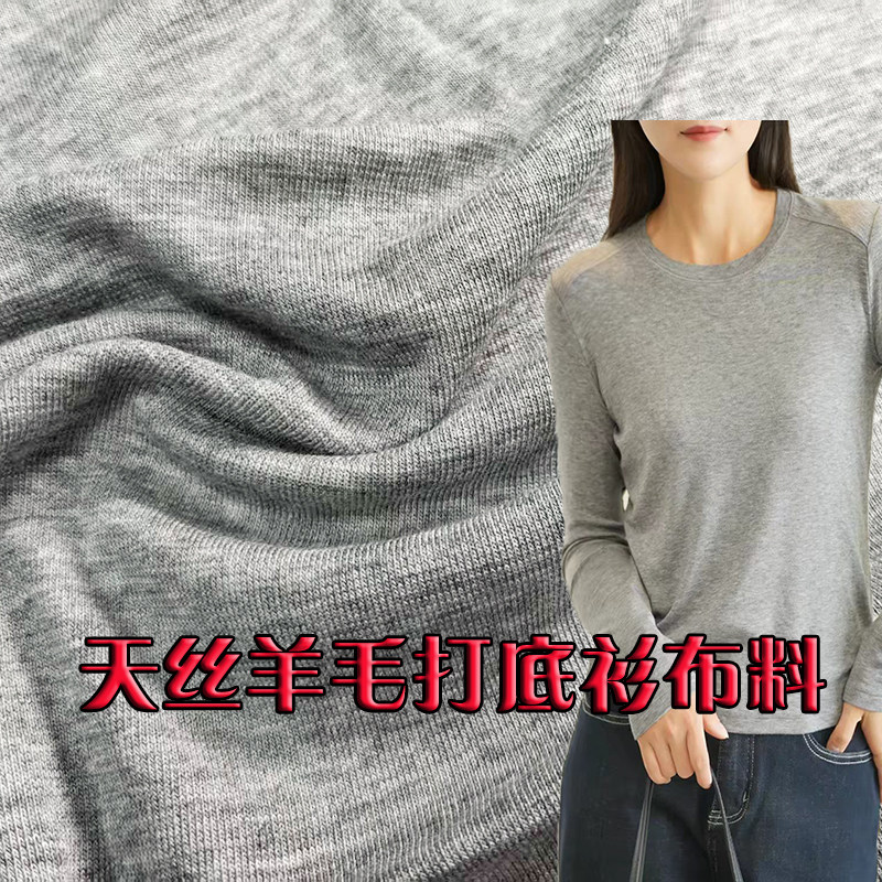 清仓羊毛针织薄款打底衫布料亲肤柔软纯色莱赛尔天丝短袖服装面料