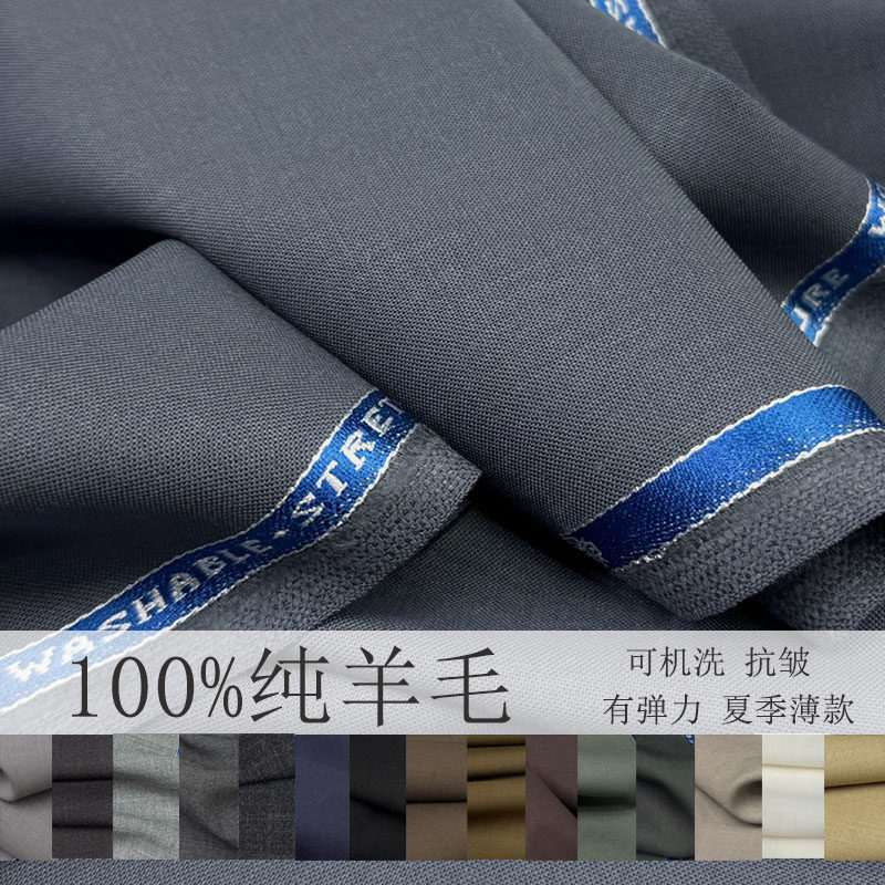 可机洗100%纯羊毛西服面料精纺纯羊毛西装布料抗皱免烫西裤布料