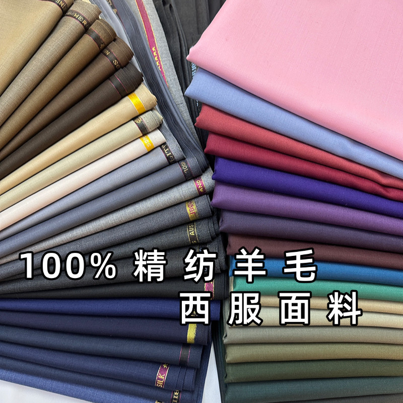 进口100%羊毛西服面料抗皱精纺纯羊毛西装布料西裤裙子纯色毛料