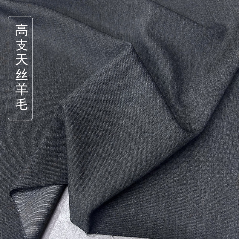 精纺粗斜纹羊毛天丝西装布料 春季新款高档弹力时装套装服装面料