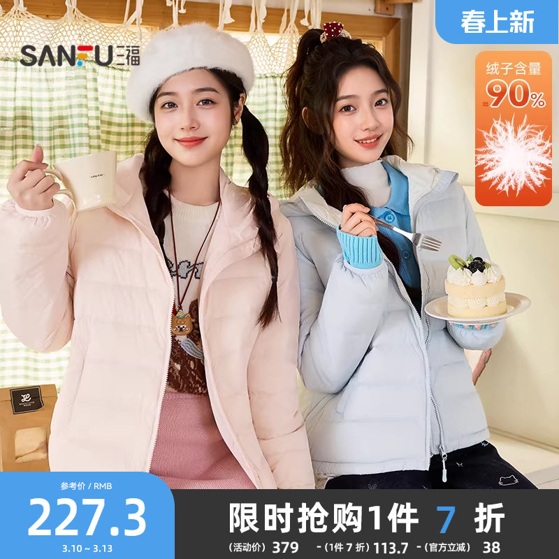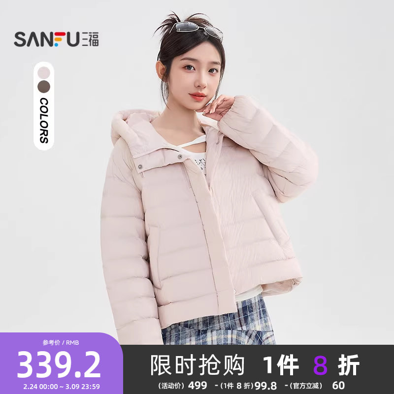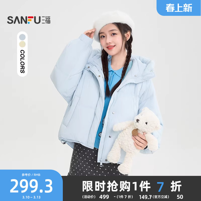 三福羽绒服女款2025新款冬季小个子韩系连帽保暖外套女装845227