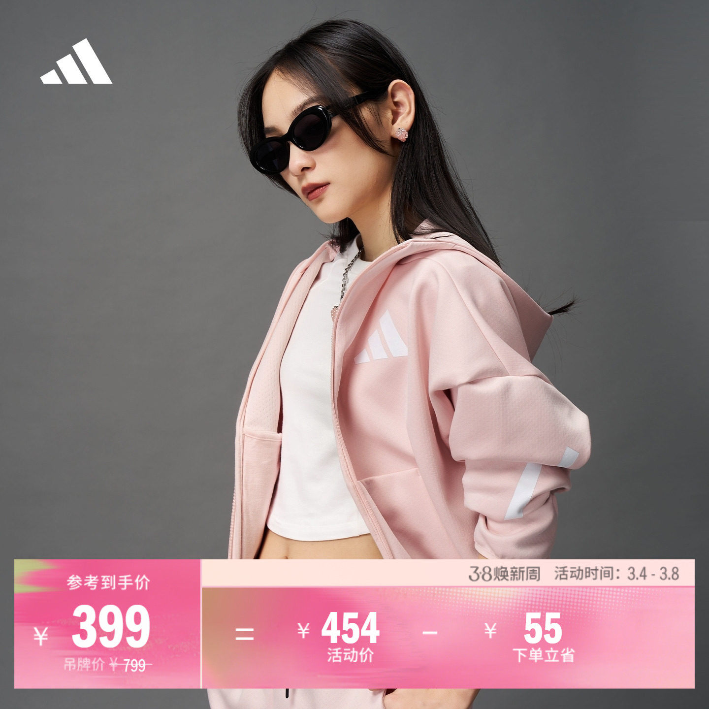 休闲宽松舒适连帽夹克外套女装adidas阿迪达斯官方轻运动GL0647