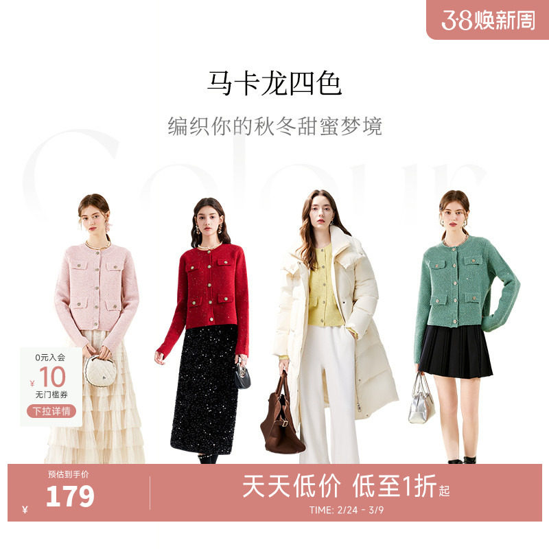 秋水伊人奥莱红色针织外套女装秋冬新款本命红时尚设计感短款上衣