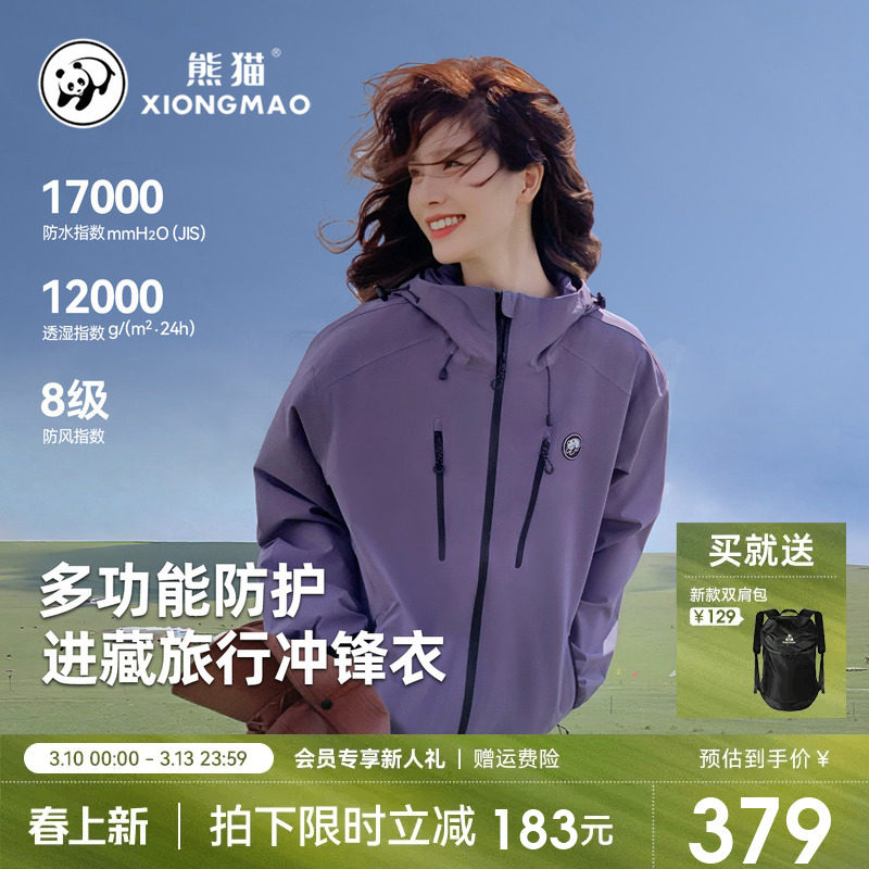 明星同款果宝熊猫冲锋衣短外套女装2026新款户外防水风旅行登山服