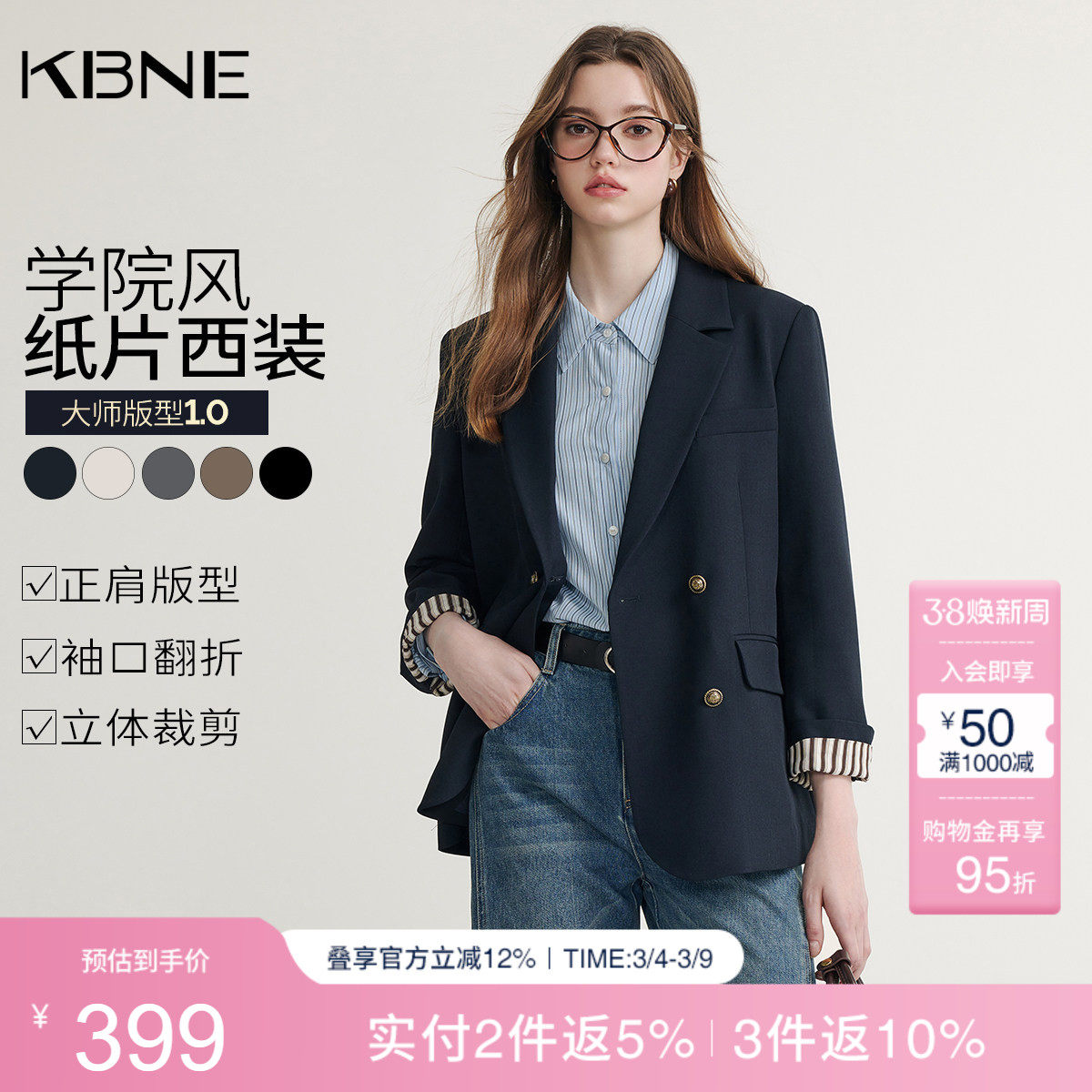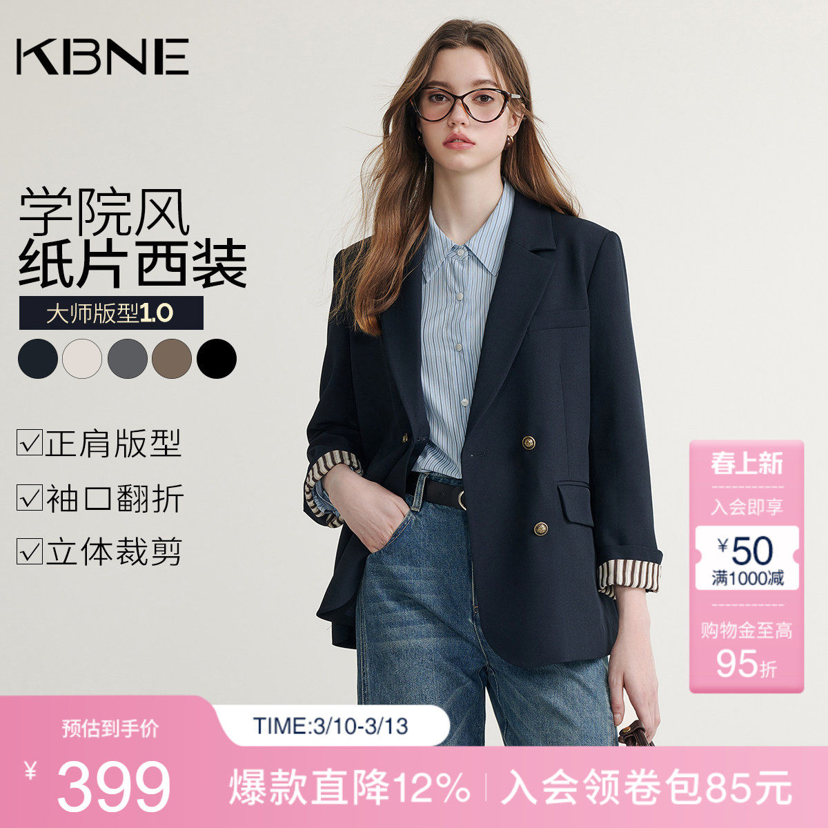 KBNE藏青色休闲西装外套女装2026春季新款长袖西服小个子上衣气质