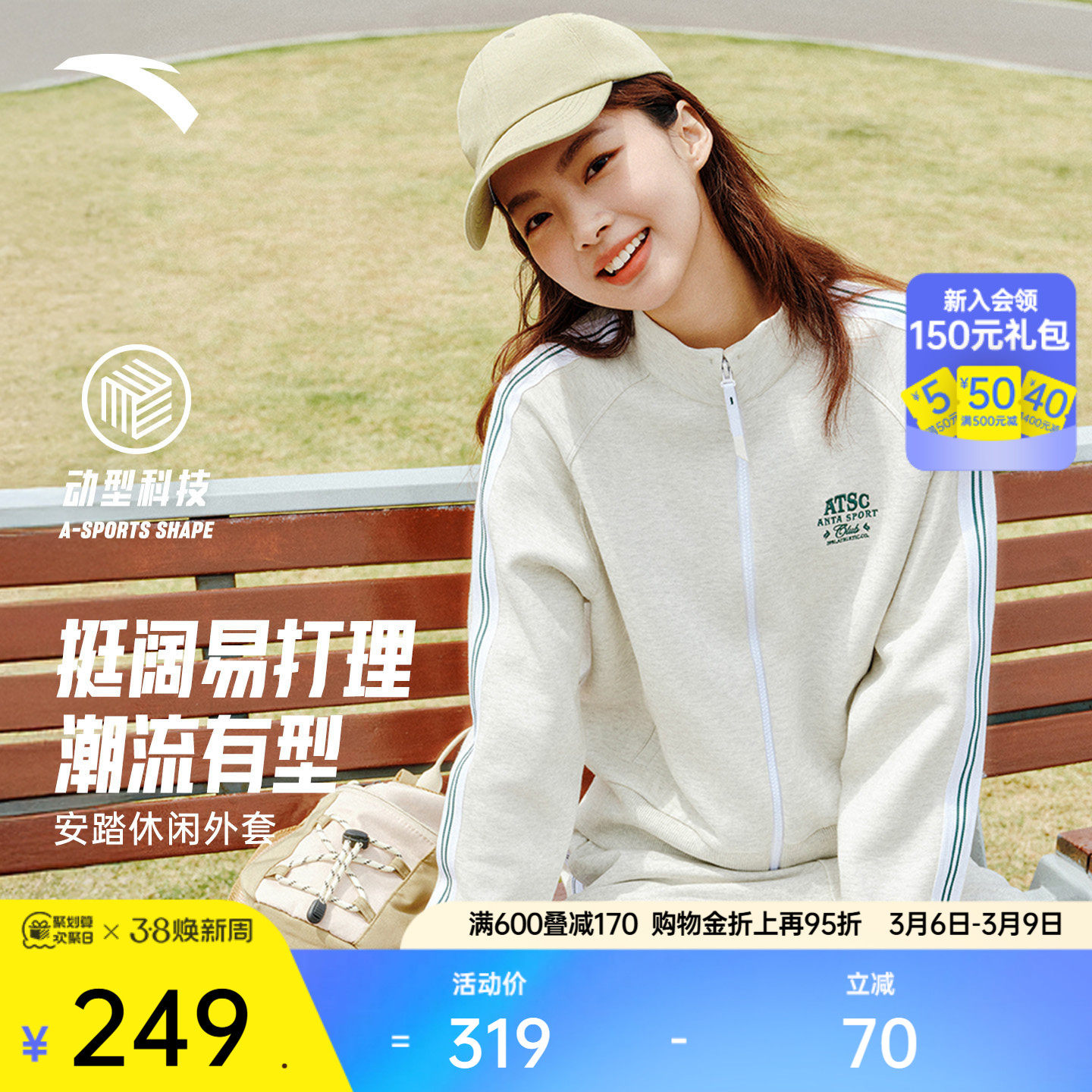 安踏针织开衫外套女装春季学院风休闲立领宽松运动上衣162538704