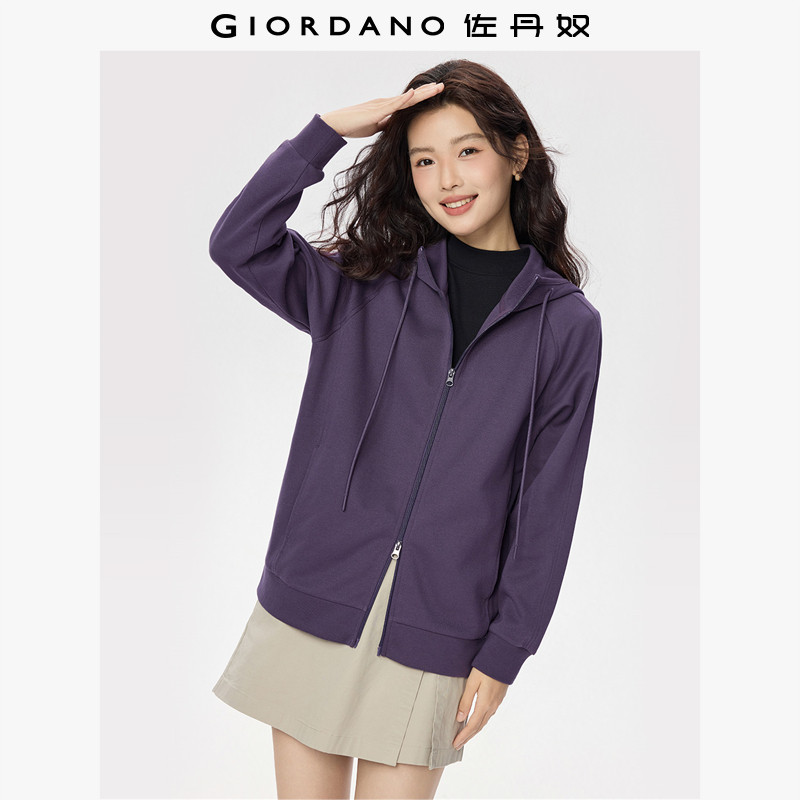 佐丹奴休闲外套女装春季新款双面布双头拉链宽松连帽卫衣05375855