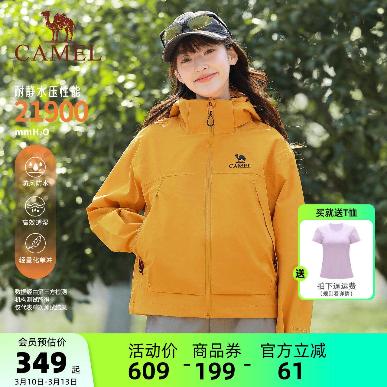 骆驼女装三防冲锋衣短款外套女小个子夹克三合一防风防水登山服女